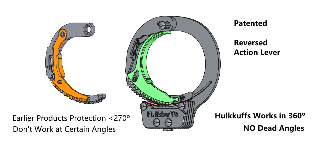 The modernized handcuffs developed by Hulkkuffs® Canada reduce and prevent most injuries in most situations.