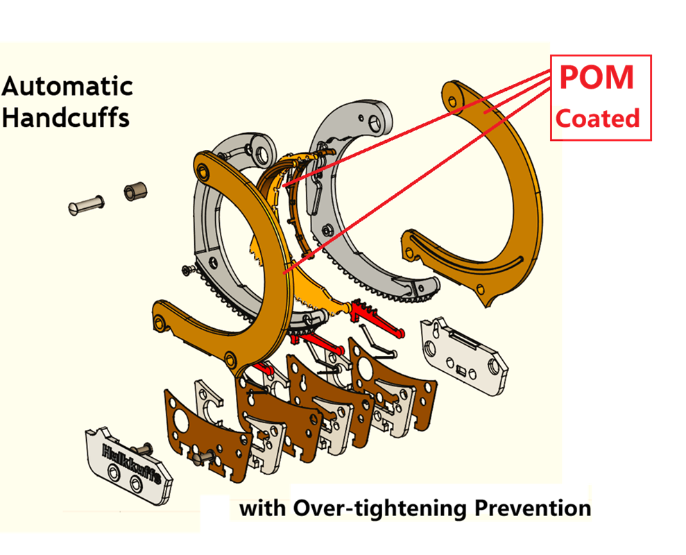 Hulkkuffs Canada is developing an modernized handcuff for harsh Canadian weather conditions, the handcuffs use POM materials in surfaces contacting wrist /skins. POM is a safe, strong plastic, which is only 1/1000 of Aluminum or 1/200 of steel. The new handcuffs will be available in Oct 2026.